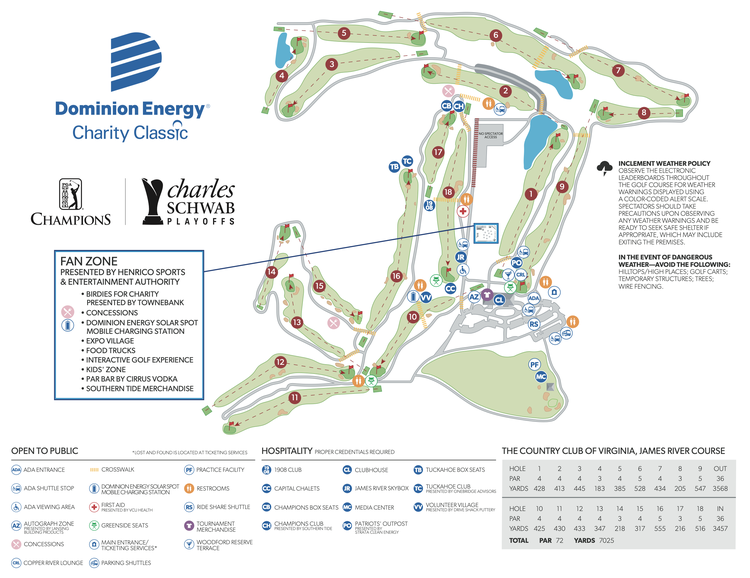 The Country Club of Virginia’s James River course was designed by William Flynn and opened in 1928. Flynn is also known for his work on Cherry Hills Country Club in Colorado, Shinnecock Hills in New York and The Upper Cascades in Virginia. The James River Course hosted the 1935 and 1967 Southern Golf Association Championship. In 1955 and 1975 the River Course welcomed the USGA Men’s Amateur Championship. The 1955 event, won by Harvie Ward, also featured then 15-year-old Jack Nicklaus, the youngest competitor in the field. Fred Ridley was the 1975 champion, having bested a field that included Curtis Strange, Jay Haas, Peter Jacobsen and Andy Bean The River Course has also hosted several men’s and women’s Virginia state amateur championships, including in 2005, which was won by Billy Hurley. The River Course was renovated in 1992 by Rees Jones and by Lester George in 2003. In 2015 Andrew Greene restored the 18th green to its original position and character and added a new 18th tee. Golf Digest recognized the James River as one of America’s best newly remodeled courses of 2005 and among the best in the state for 2007–2008. The fairways are currently Tifsport Bermudagrass and the greens are A4 Bentgrass.